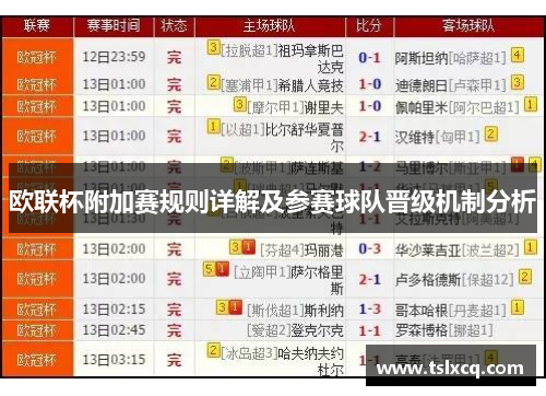 欧联杯附加赛规则详解及参赛球队晋级机制分析